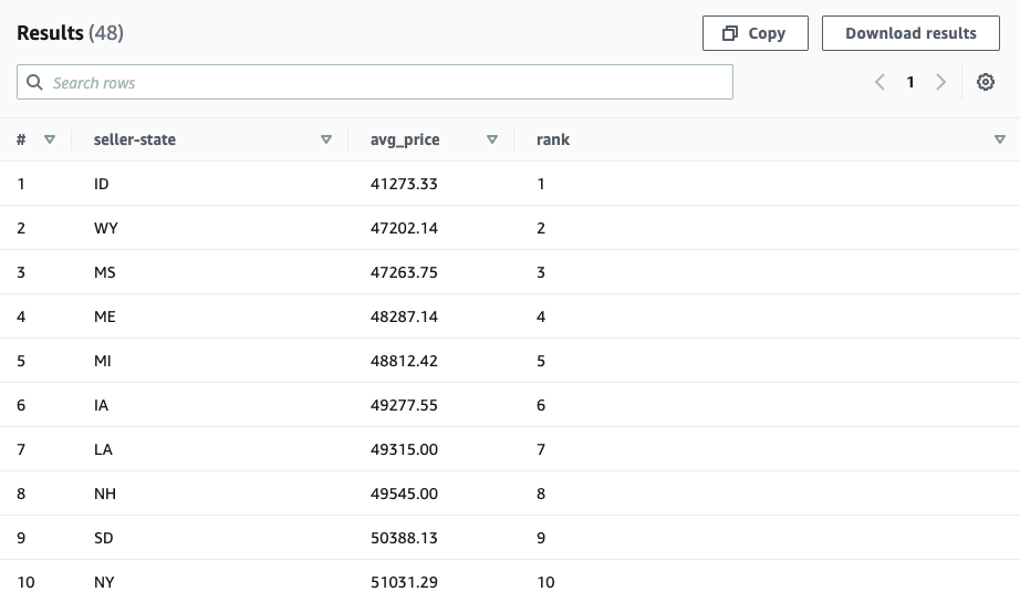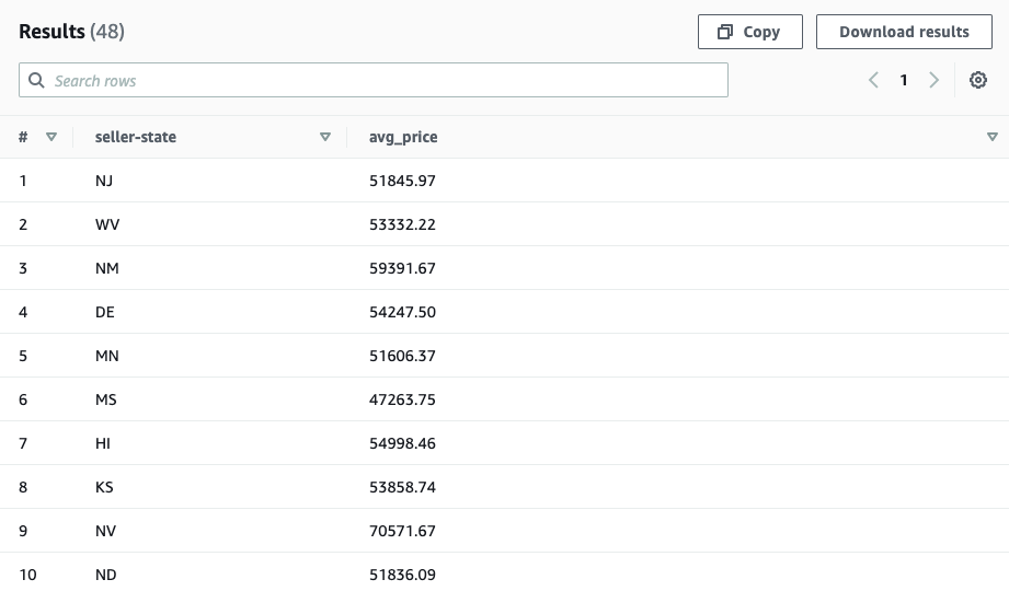 At this point, we can already see ID is our cheapest state on average for a Ford Bronco. One of the huge benefits of using Amazon Athena with Web Scraper Cloud data is that running queries and looking at your results is a quick and simple process.