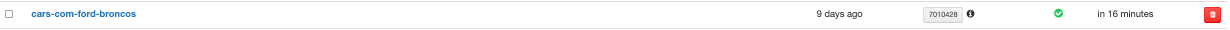 The first thing you’ll need is a completed scraping job. Here we have a job to scrape Cars.com for Ford Bronco data: